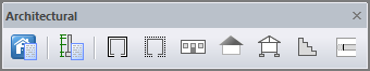 The Architectural Toolkit facilitates the drawing of building plans and elevations. The following options are available on the menu and toolbar: