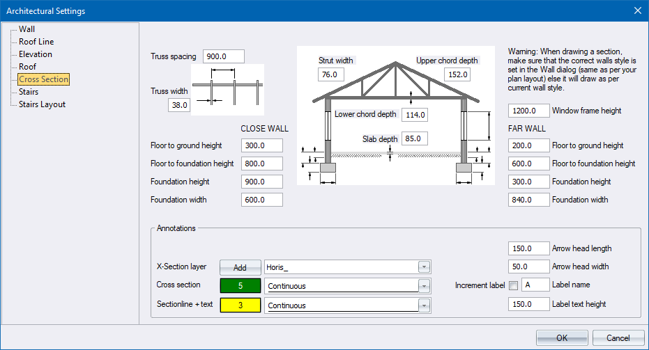 Before you run this function you should set up the Cross Section parameters in the Architectural Design Setup:
