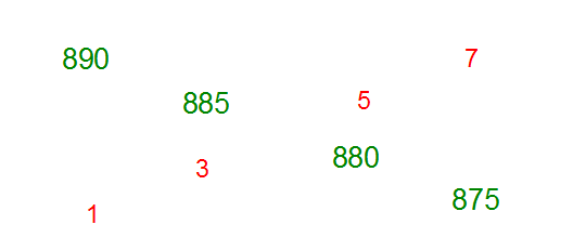 This example was done from left to right with an decrement of five in green, and with an increment of two in red.