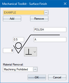 Select a predefined surface finish annotation from the drop-down list, or fill in the relevant data.