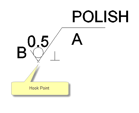 This function allows you to draw a predefined surface finish annotation, or specify and create a new surface finish annotation style.