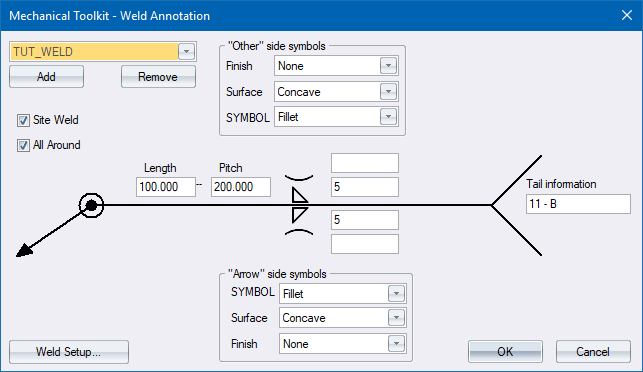 Select a predefined weld annotation from the drop-down list, or fill in the relevant data.