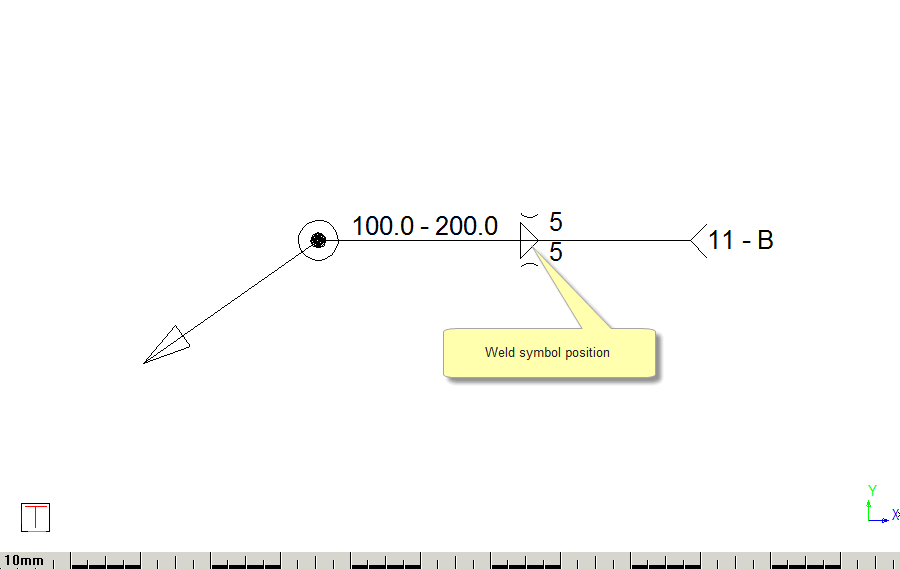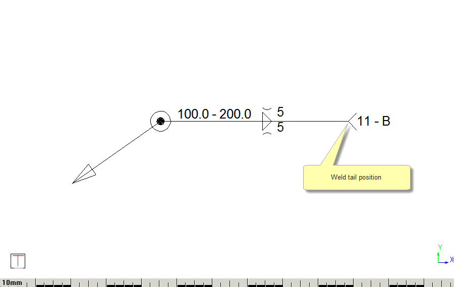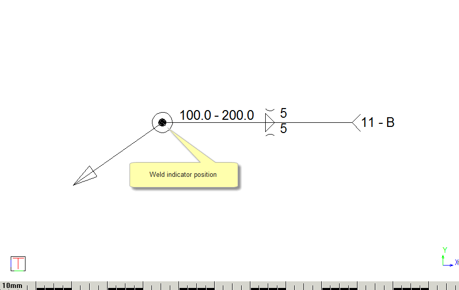 Click on the desired position of the weld indicator. Cursor hold will be active at this point, allowing you to specify a position for the weld symbol and tail that is aligned with the weld indicator.