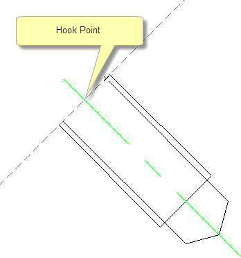 Position the cursor where the drill hole must be drawn, and then click. The hook point is at the top of the drill hole, as shown below.