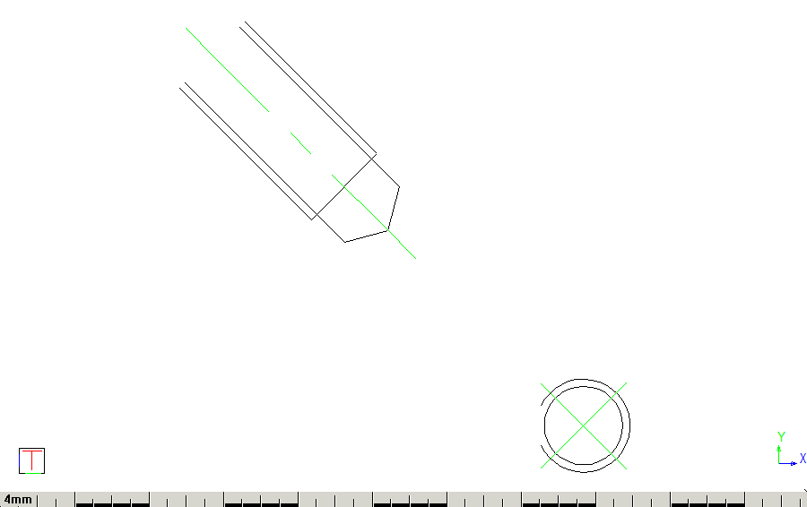 Cursor hold is still active at this point, allowing you to specify a position for the plan view of the drill hole that is aligned with the axis of the drill hole side view. Indicate a centre point for the plan view.