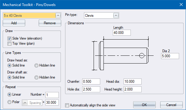 Make sure that the drawing units are set to "mm" (millimetres) before using the mechanical toolkit functions.