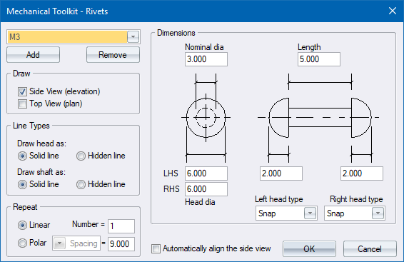 This function allows you to draw a predefined rivet, or specify and create a new rivet definition.