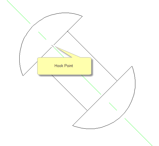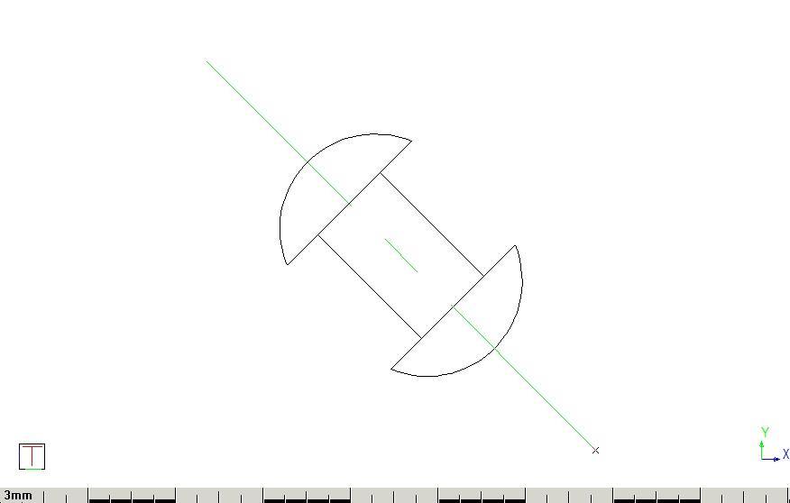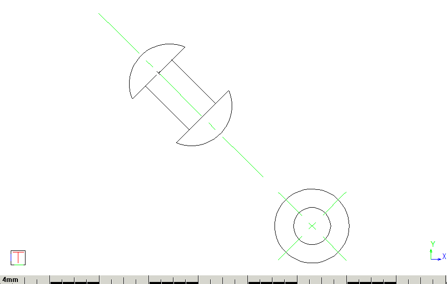 Cursor hold is active at this point, which allows you to specify a position for the plan view of the rivet that is aligned with the axis of the rivet side view. Indicate a centre point for the plan view.