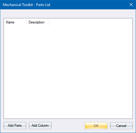 Click Add Column to add extra columns for additional data. This must be done before adding parts.