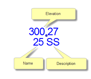 This function allows you to add a coordinate point to the drawing. You can specify the point name, elevation and description. The point has the same format as the import points function, and can therefore be used by the other COGO functions.