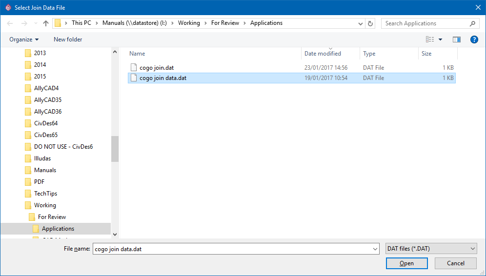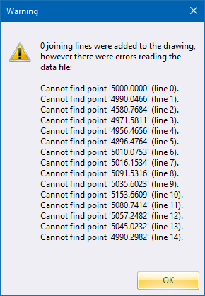 The COGO points are joined according to the data in the join file, and the following message displays.
