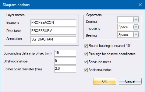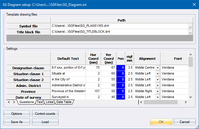 This function allows you to set the SG Diagram options before tracing the polygon area for the diagram itself.