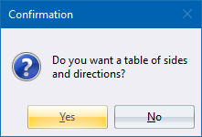 Click Yes for a table listing sides and directions.