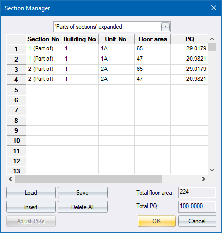 The section data is inserted in the Section Manager.