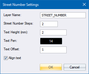 This function allows you to place street numbers, either horizontally or perpendicular to the boundary, at a specified offset from the boundary line.