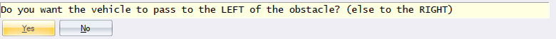 Click Yes if the vehicle should pass to the left of the obstacle; and No if the vehicle should pass to the right of the obstacle.