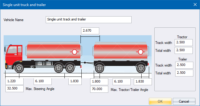 The Vehicle Dimensions window allows you to set the dimensions for various vehicle types.