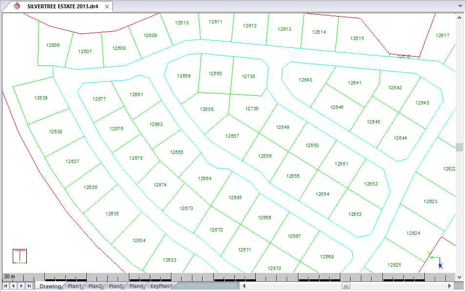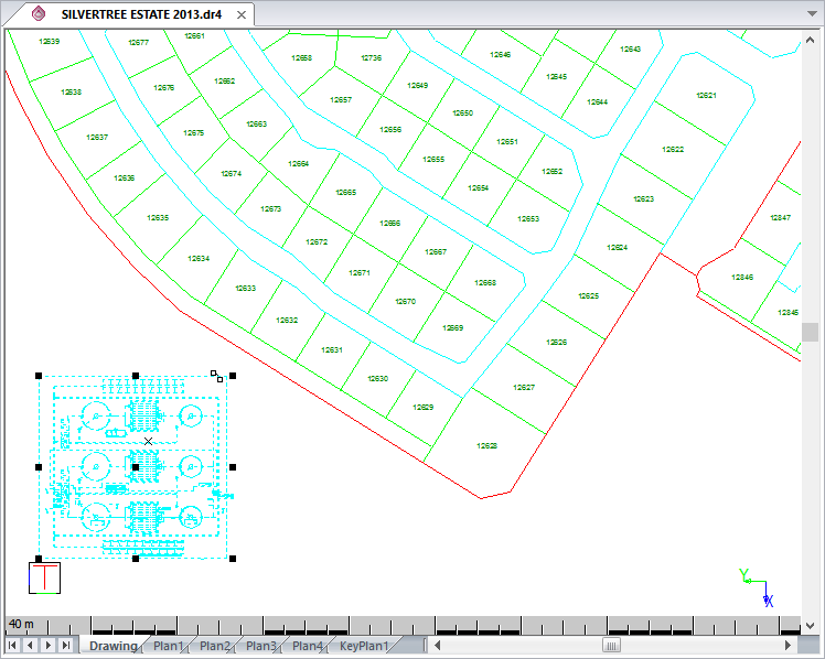 Here is a drawing in AllyCAD drawn in Surveyor mode. You now load a drawing onto this, which is also drawn in Surveyor mode. If both drawings are in Surveyor mode the drawing is loaded relative to the coordinates on each drawing i.e. the loaded drawing is automatically correctly geo-referenced.