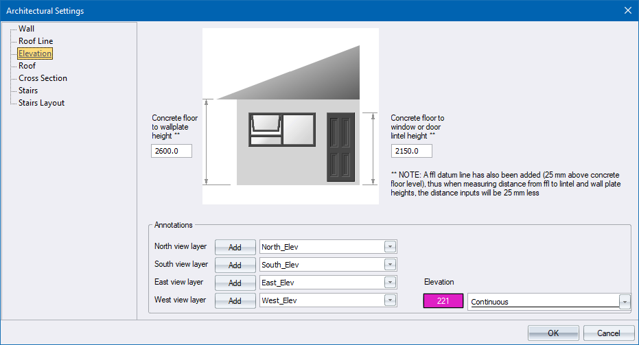 Select a layer for the east elevation view from the list, or click Add to create a new layer. |