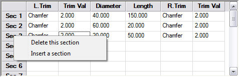 Enter the relevant dimensions (in drawing units) per section to be used when drawing the shaft. You can define up to 20 sections.