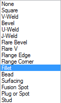 Enter the relevant dimensions (in drawing units) to be used when drawing the weld. |