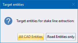 In the Target entities dialog, specify if you want to extract from CAD entities or Road entities.