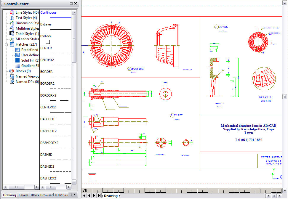 This function allows you to display the Control Centre, which displays information about the following objects in the drawing: