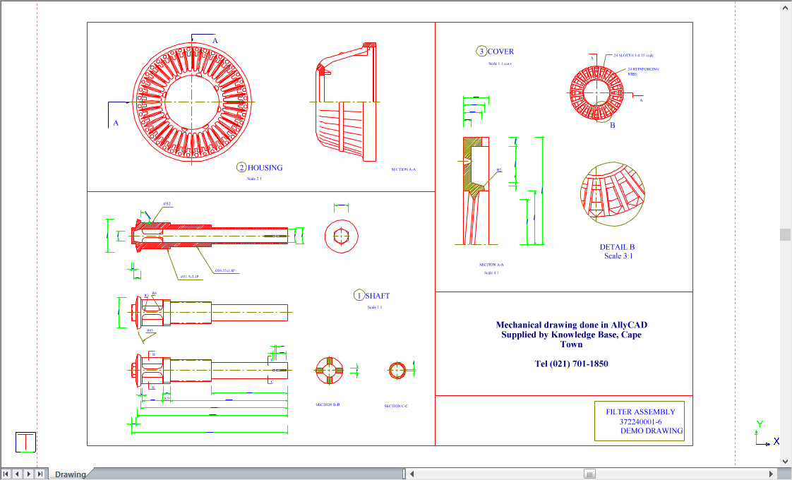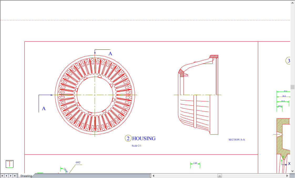 The drawing below has been zoomed into one of the components in the drawing. If you have split the drawing into multiple viewports, you need to click in the viewport you want to zoom to make it the active viewport.