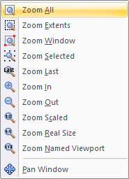 Zoom All ignores the paper extents (pink dashed lines in the drawing), as well as invisible entities (entities that are in layers where the visibility is set to off).