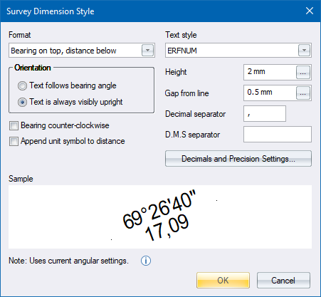 Select this checkbox to have the bearing angle calculated as the angle between the drawing's zero angle and the bearing line, measured in a counter-clockwise direction. |