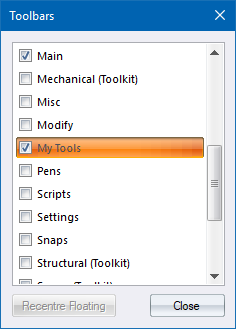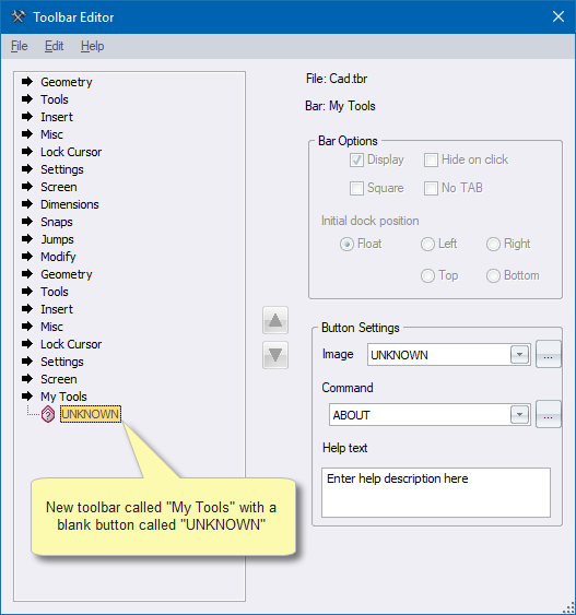 - The new My Tools toolbar will be added to the toolbar list with a default button called UNKNOWN.