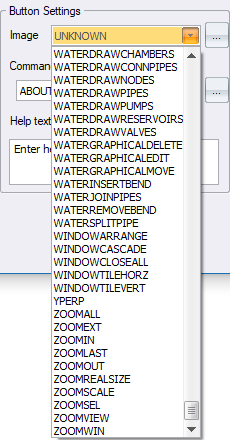 - Click UNKNOWN. The Button Settings update to display the image associated with the button, as well as the command and help text that will be associated with the new button. You can use either one of the built in icons or icons that have previously been created.