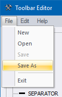 - Once you have opened the default menu file you will save the file to the user folder, which prevents the file being overwritten when any updates are released. Select the File ► Save As menu option.