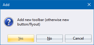 - The following message displays. You are adding a new toolbar so click Yes. If you click No the system adds a button or flyout to the highlighted toolbar.