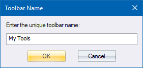 The Toolbar Name dialog displays. Type in the name of the new tool bar, "My Tools", then click OK to continue.