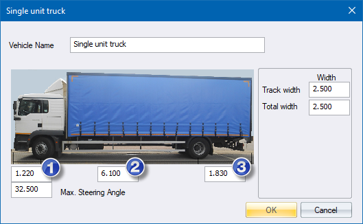 Wheelbase. The distance between the centre of the front wheels and the centre of the rear axle group. |