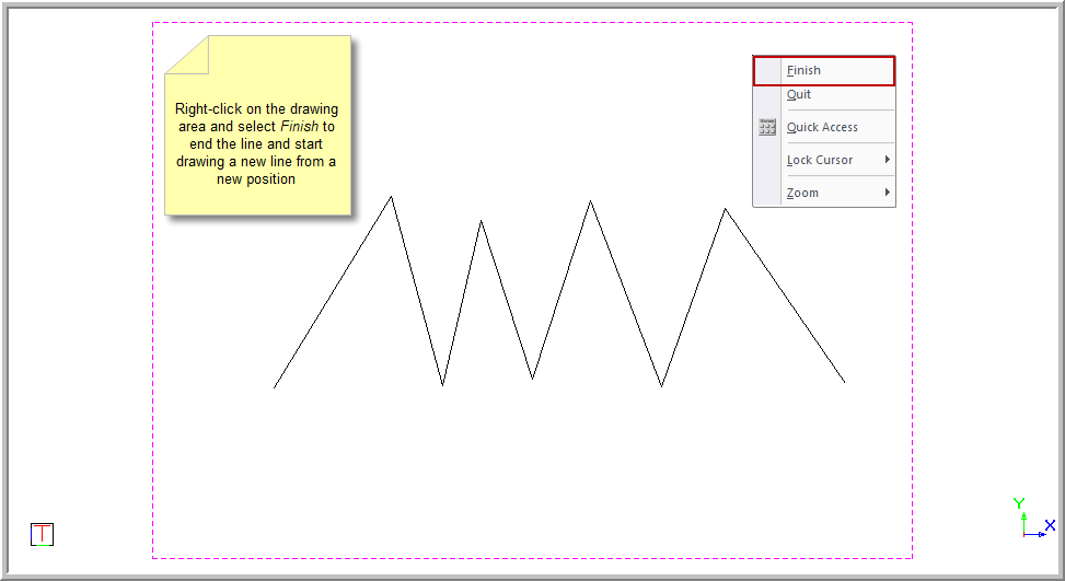 - To stop drawing the current chained line, right-click on the screen and select Finish. The chained line is stopped from being drawn from the last point entered.