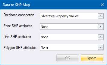 If a database is connected to the drawing, the Data to SHP Map window displays:
