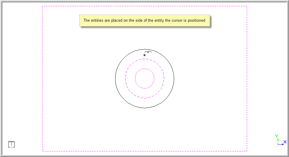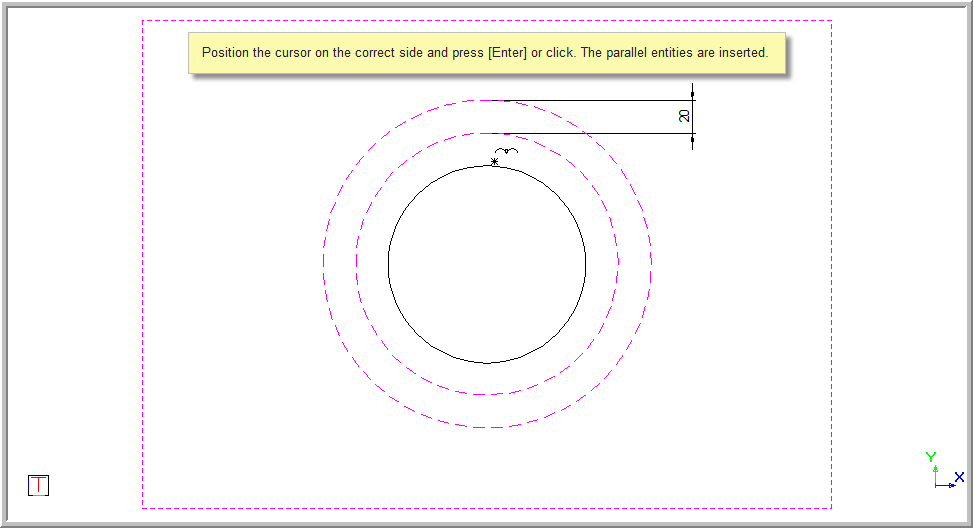 This function allows you to draw geometry lines or circle parallel to an entity (solid or geometry) by a specified distance or through a specified point, by indicating the number of times to copy the entity and pressing enter or clicking on the side to insert the parallel entities.