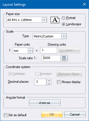 size, orientation, units and scale. Modify the layout settings as