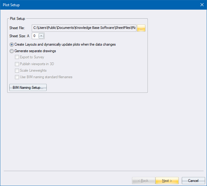 Select the Plan.sht sheet file from the standard sheet files supplied with Civil Designer, and then click Next.