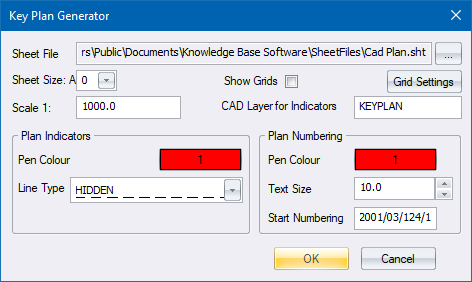 Before you generate the key plan, you should have defined one or more plot sheets. The Key Plan option then allow you to position a master sheet over the plot sheets to show their position relative to the overall site and each other.