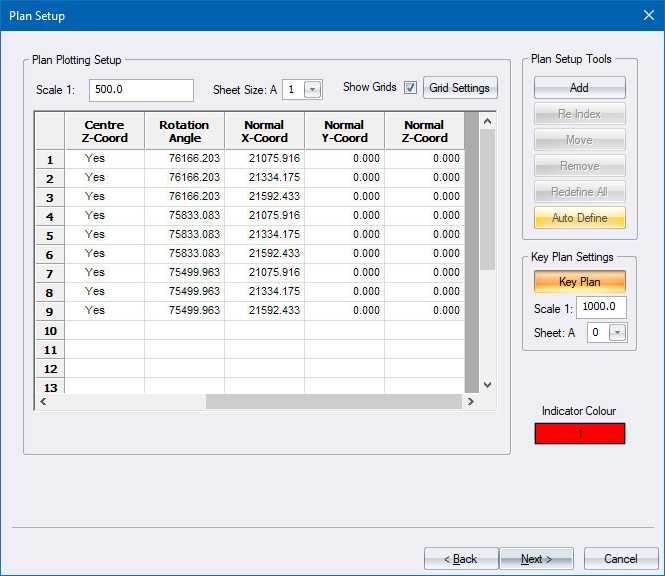 In this example you first define a number of plot sheets using the Auto Define option.