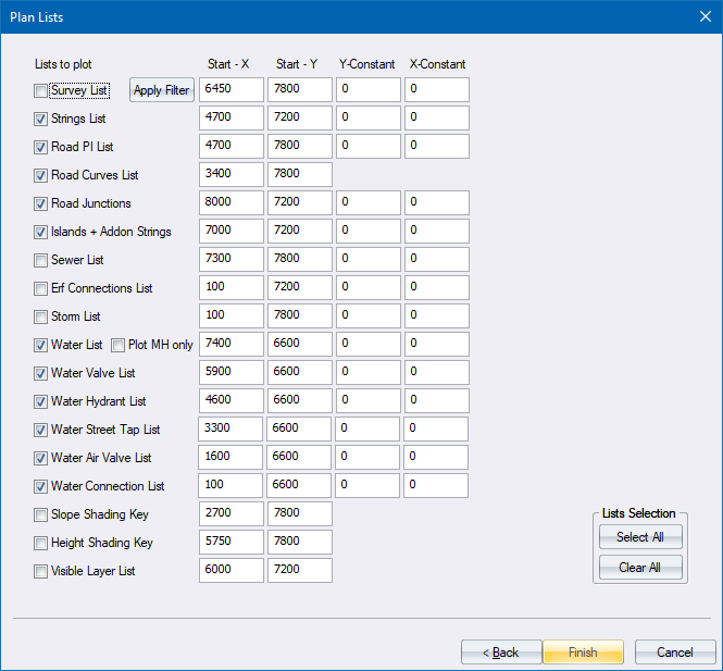 Select which lists you want to include on your drawing and click Finish.