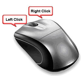The mouse offers left-click and right-click options. The left-click is the standard selection method and is simply referred to as a "click".