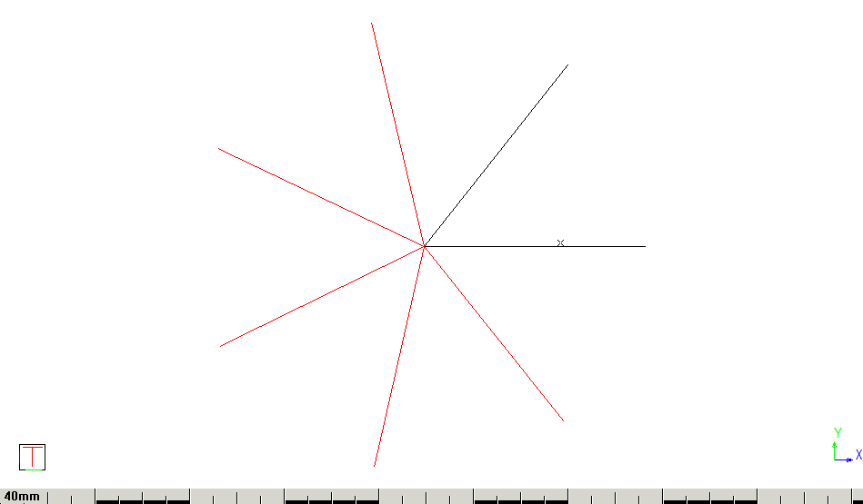 This function allows you to divide an angle formed by two lines into a specified number of equal angles. In the example below, the angle between the outer two lines has been divided into four equal sections.