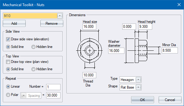 This function allows you to draw a predefined nut, or specify and create a new nut definition.