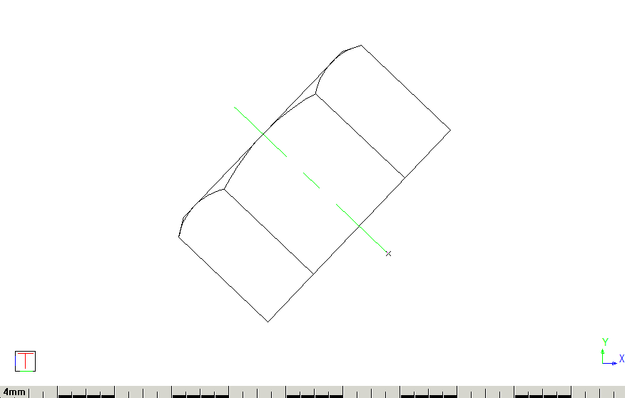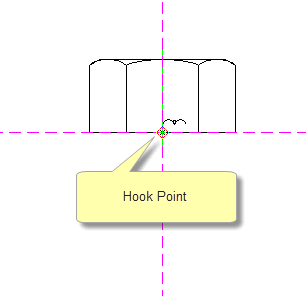 Cursor hold is active at this point, which allows you to specify a position for the plan view of the nut that is aligned with the axis of the nut side view. Indicate a centre point for the plan view.