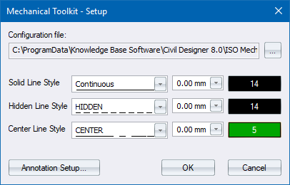 This function allows you to set the default line type, line width and pen for solid lines, hidden lines and centre lines, as well as the welding, surface finish and datum annotations.