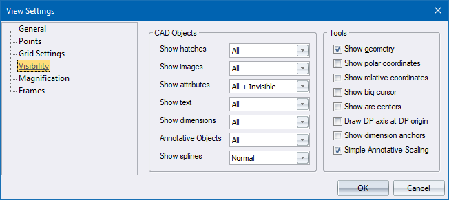 Use this page to show or hide certain objects in the drawing.